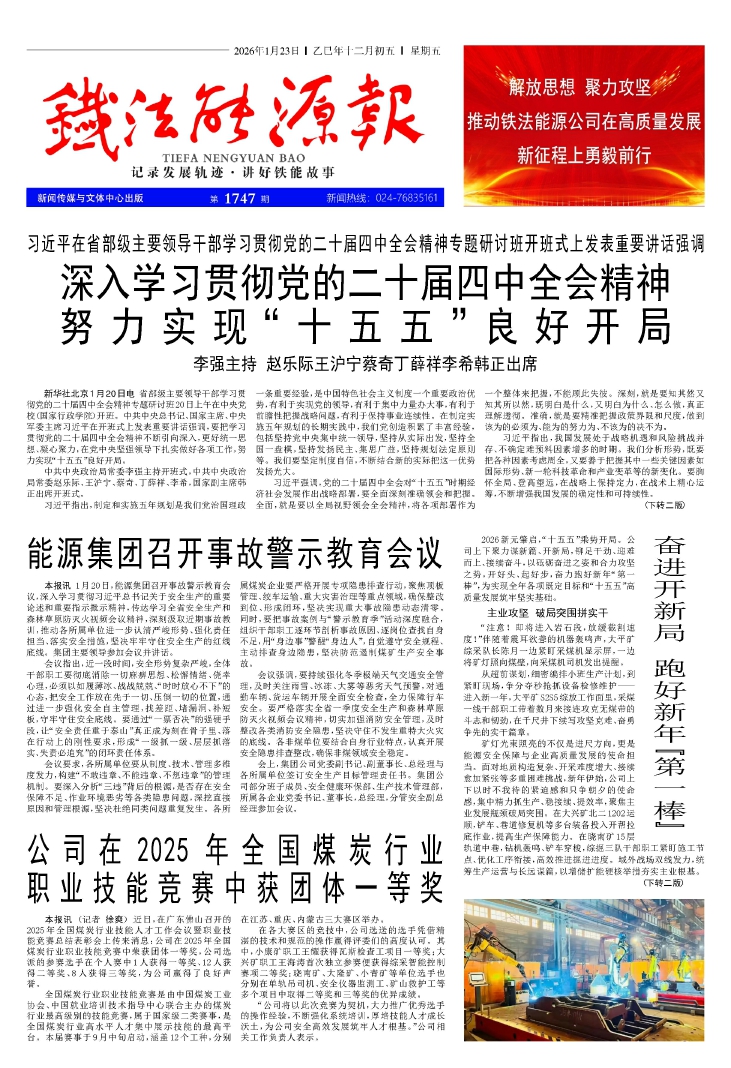 - 01-13 鐵法能源公司:嚴(yán)字當(dāng)頭守牢底線(xiàn) 全力守護(hù)企業(yè)安全穩(wěn)定大局