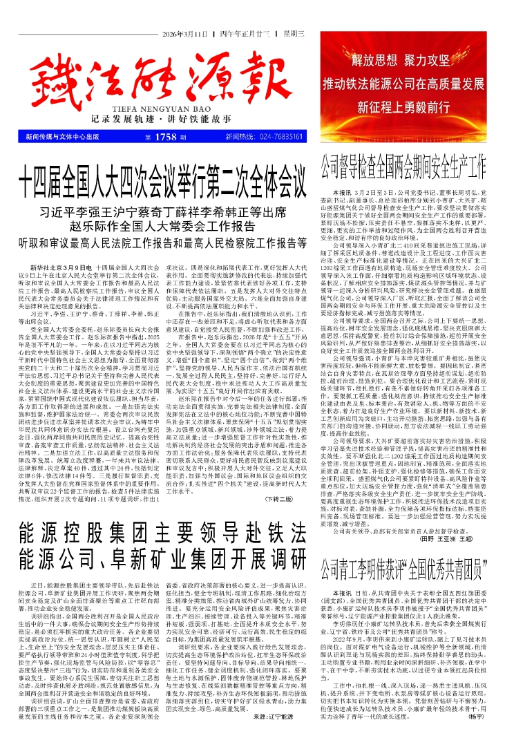 - 03-03 第三屆鐵法能源公司黨委第四輪巡察動員部署會召開