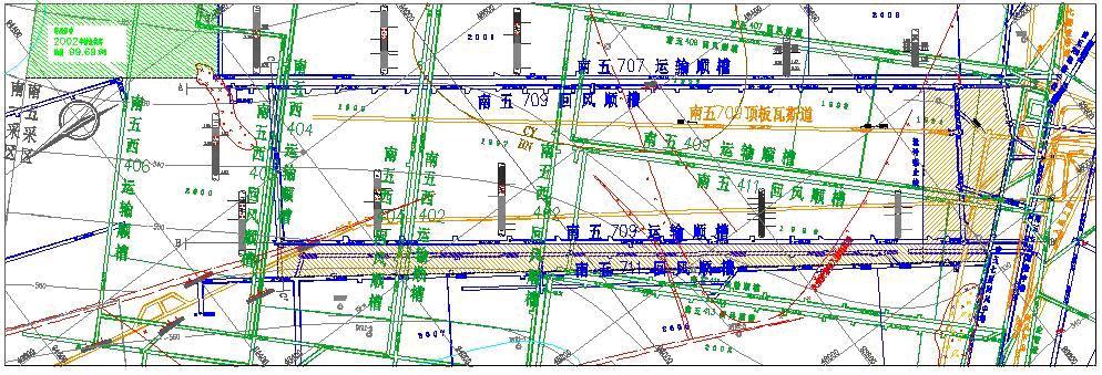 圖3? S5-709工作面頂板瓦斯道布置示意圖