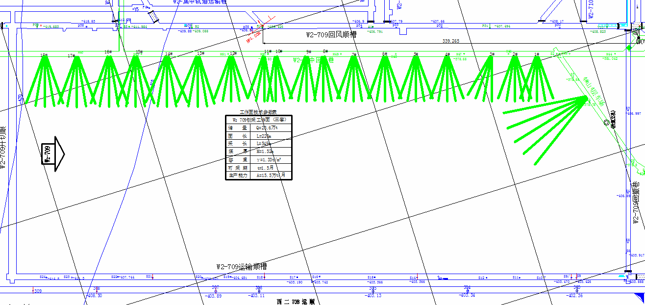圖3? W2709工作面W2II期排風(fēng)巷下行鉆孔布置示意圖