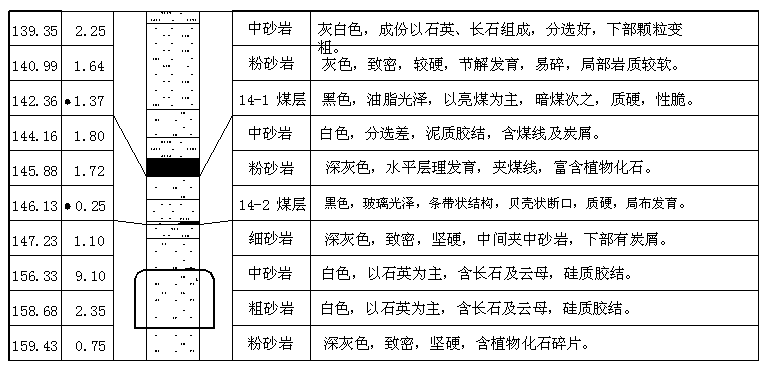 大興礦N2-1203底板瓦斯道全長1691m。本工作面為12煤層首采工作面,四周均未采動。該巷道用途是為N2-1203工作面采取穿層消突采區(qū)打鉆。位于大興礦-600水平、井下標高-690~-630m。工作面地表北部為興隆屯村,已動遷;南部為大孤榆樹村;東西部為農(nóng)田地。工作面地表為采煤沉陷區(qū),該積水區(qū)在回采9煤層時已進行了安全論證。工作面地表中部有4條高壓線和2條礦區(qū)公路、1條礦區(qū)鐵路、1條瓦斯管路通過。工作面東側(cè)為F15-1和fN2-3號斷層;工作面西側(cè)為F44號斷層;南側(cè)為主副井工業(yè)廣場保護煤柱;北側(cè)為F15號邊界斷層,與大隆井田相鄰。工作面上鄰10-2煤層,不可采,一般煤厚為0.43m,與12煤層間距在57.69~71.76m之間,12煤層上部小范圍內(nèi)發(fā)育有12-1煤層,煤厚1.09m與12煤層間距為5.34m,僅614號地質(zhì)鉆孔實見;本工作面從拉門掘進時,巷道位于14-1層煤中,隨著巷道向前掘進,將巷道頂板控制在距14-1煤層底板7-10m范圍。巖層硬度(?)4~5。