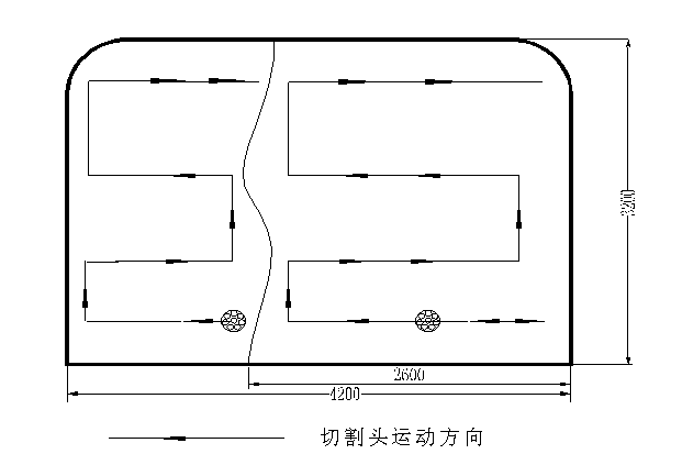 該工作面巖性主要以細、中砂巖為主,相對堅硬,要實現(xiàn)快速掘進綜掘機的選型是施工的必要條件,EBZ260型綜掘機截割穩(wěn)定性好,可充分利用自身重量作業(yè)能力強,運貨速度快,操作簡單易懂。雖然N2-1203底板瓦斯道4m寬、3m高就可以滿足消突打鉆空間施工要求,考慮到綜掘機與風(fēng)筒的高度和綜掘機本身3.6m寬度,因此我礦針對該工作面進行一面一議的設(shè)計理念至關(guān)重要,巷道設(shè)計為寬度4.2m,高度3.2m,既滿足了大機型綜掘設(shè)備的使用空間,又很好的提高了工作效率。該綜掘機的使用可完成不退車分次截割實現(xiàn)一次成巷。