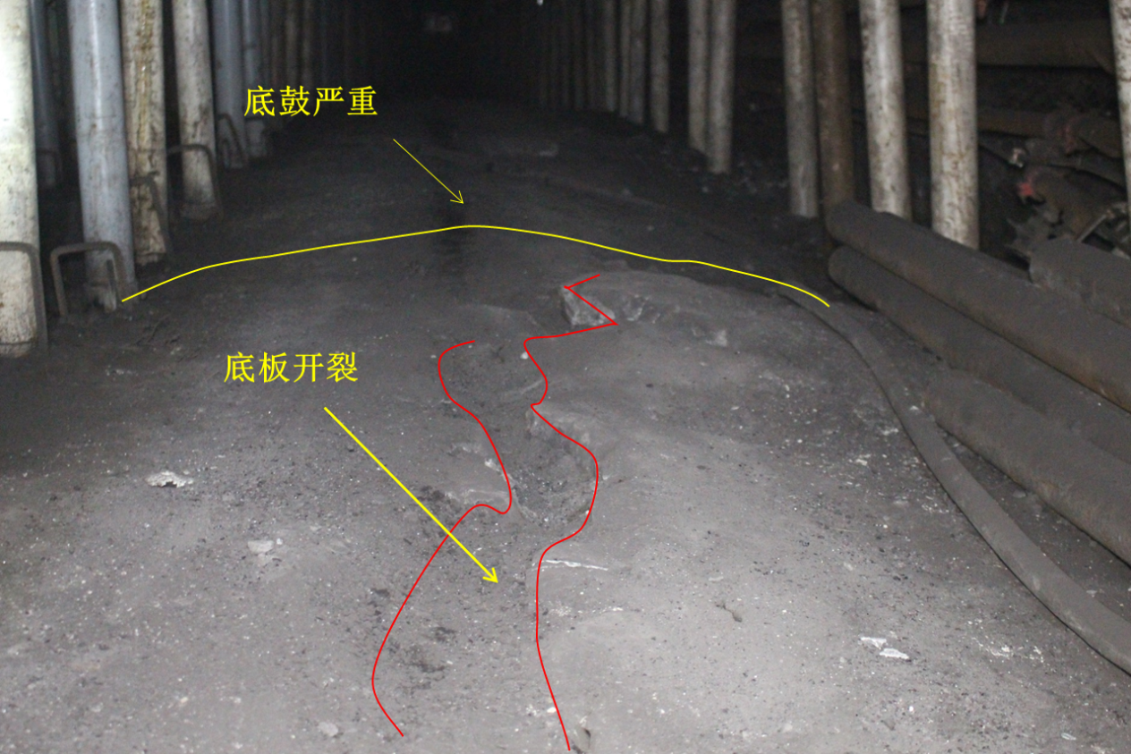 3、繼續(xù)巷道頂?shù)装逡平?、頂板下沉量、底鼓量監(jiān)測(cè)。