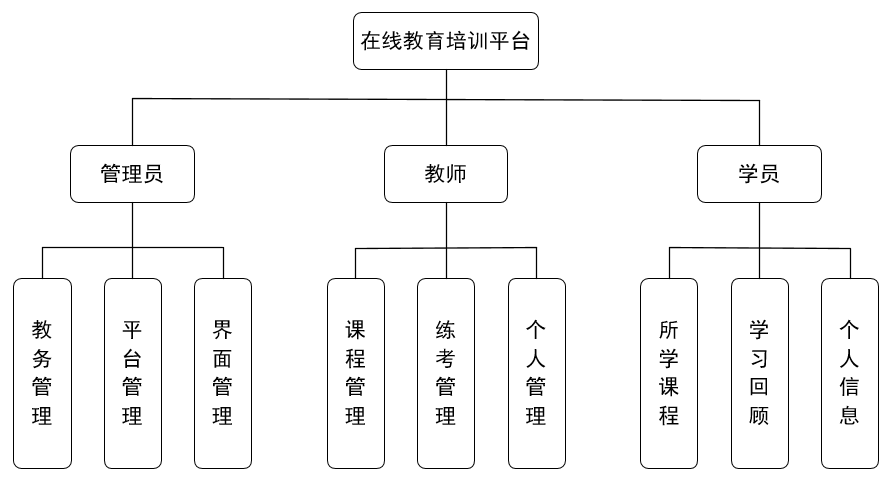 平臺(tái)分為三種角色,分別為管理員、教師和學(xué)員。三種賬號(hào)有各自的登錄窗口,根據(jù)不同角色的職責(zé)具有相應(yīng)的系統(tǒng)功能。具體系統(tǒng)結(jié)構(gòu)詳見圖2。