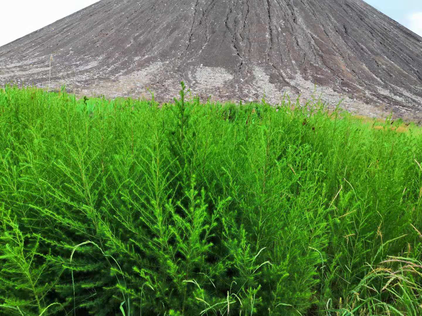 曉南礦矸石山腳下綠草蒼翠挺拔、郁郁蔥蔥。