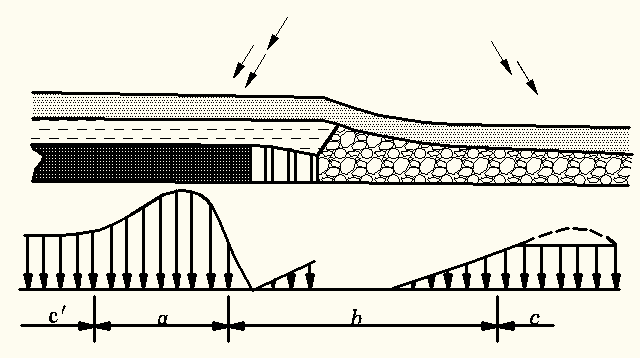 a—應(yīng)力增高區(qū);b—應(yīng)力降低區(qū);c、c’—原巖應(yīng)力區(qū)