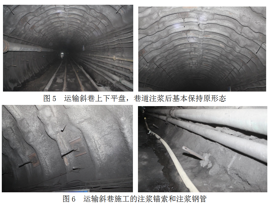 通過對巷道圍巖的變形量觀測,以及對非試驗段觀測對比分析,非試驗段的巷道中高日收縮量高達(dá)15mm,中寬日收縮量為5mm,并出現(xiàn)底臌現(xiàn)象,需要翻修。運輸斜巷及回風(fēng)聯(lián)絡(luò)巷采用圍巖劈裂注漿施工承壓蓋板加固與注漿錨索聯(lián)合試驗段的巷道中高日收斂量6-7mm,累計最大收斂量350mm,巷道中寬日收斂量2-3mm,累計最大收斂量145mm,巷道基本保持原樣,有微量底臌,滿足工作面回撤要求,實現(xiàn)了不需要巷道翻修的目的,取得了較大的安全與經(jīng)濟(jì)效益。