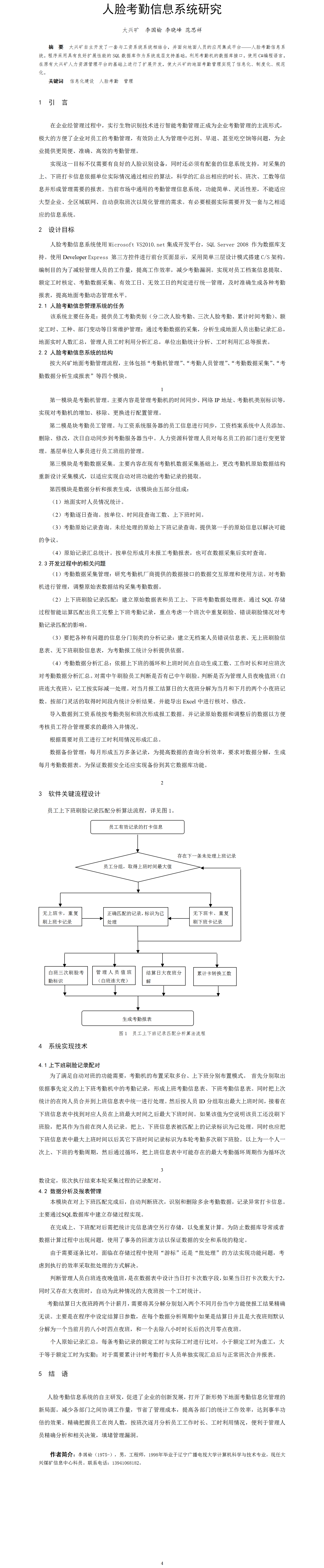 公司等級(jí)獎(jiǎng)?wù)撐?--人臉考勤信息系統(tǒng)研究