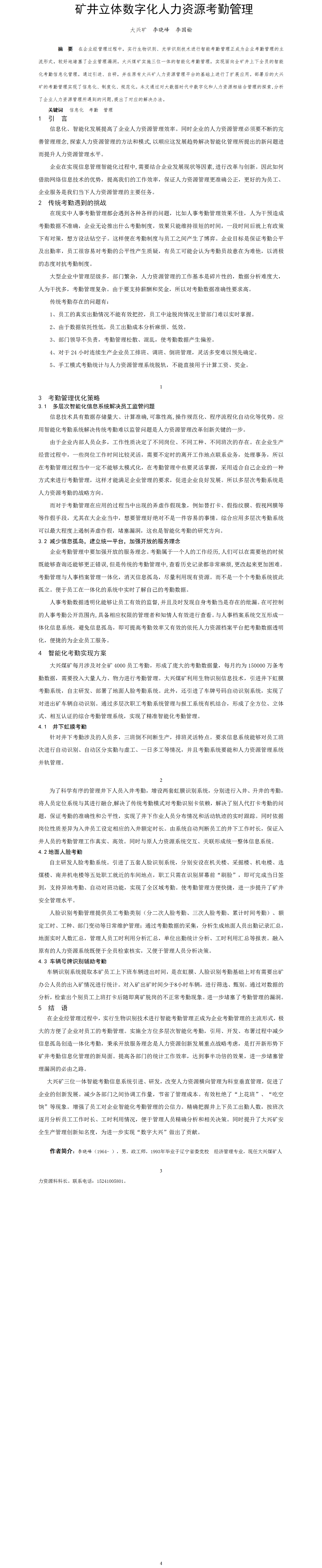第48屆等級獎?wù)撐?--礦井立體數(shù)字化人力資源考勤管理