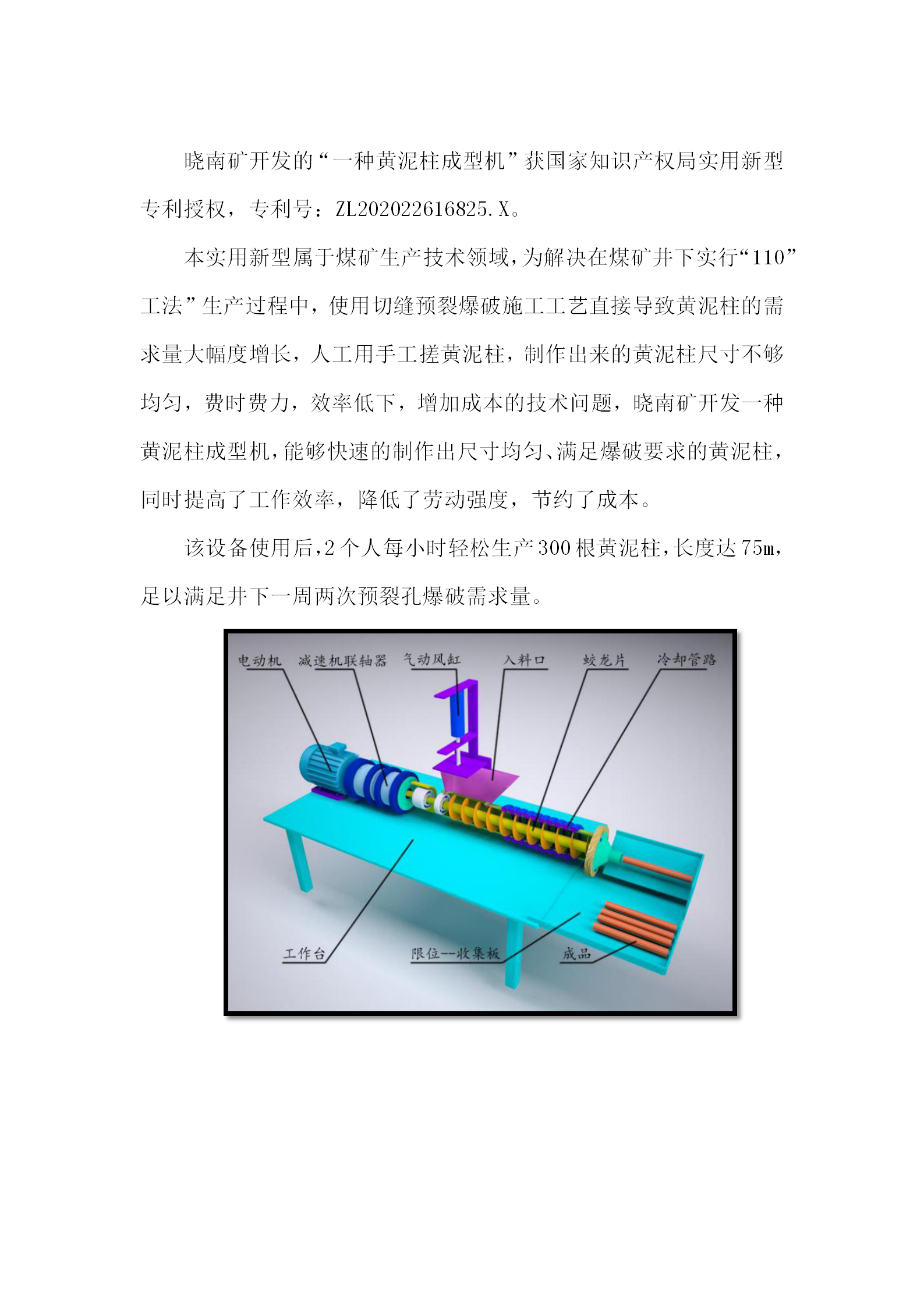 曉南礦獲得一項實用新型專利授權(quán) ——一種黃泥柱成型機