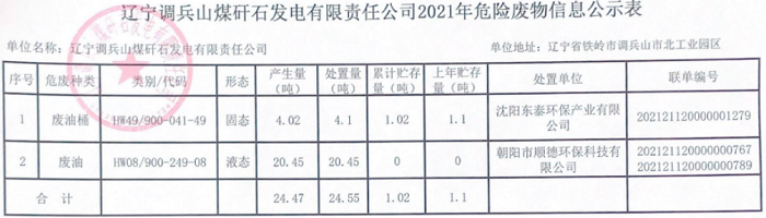 熱電廠2021年危險(xiǎn)廢物信息公示