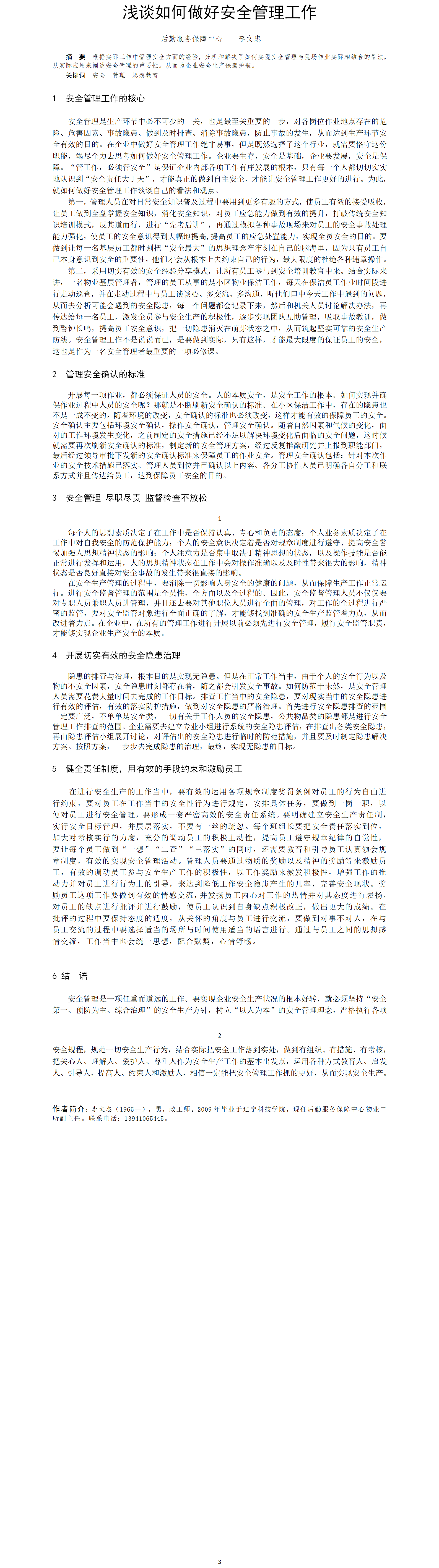 第52屆等級獎論文---淺談如何做好安全管理工作