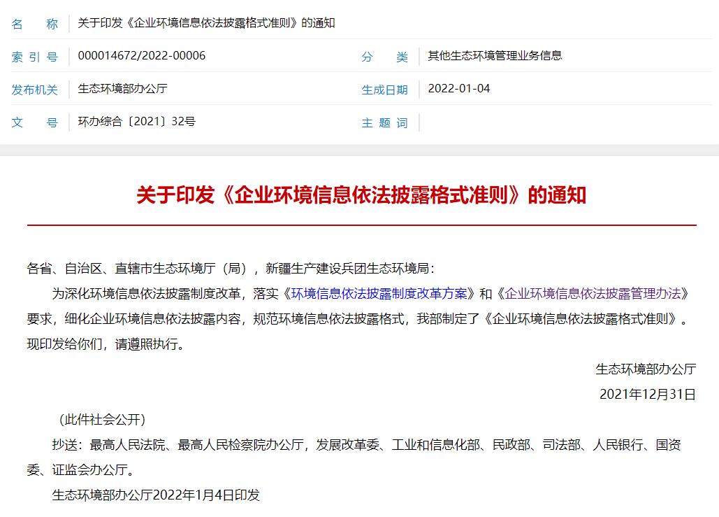 關(guān)于印發(fā)《企業(yè)環(huán)境信息依法披露格式準則》的通知