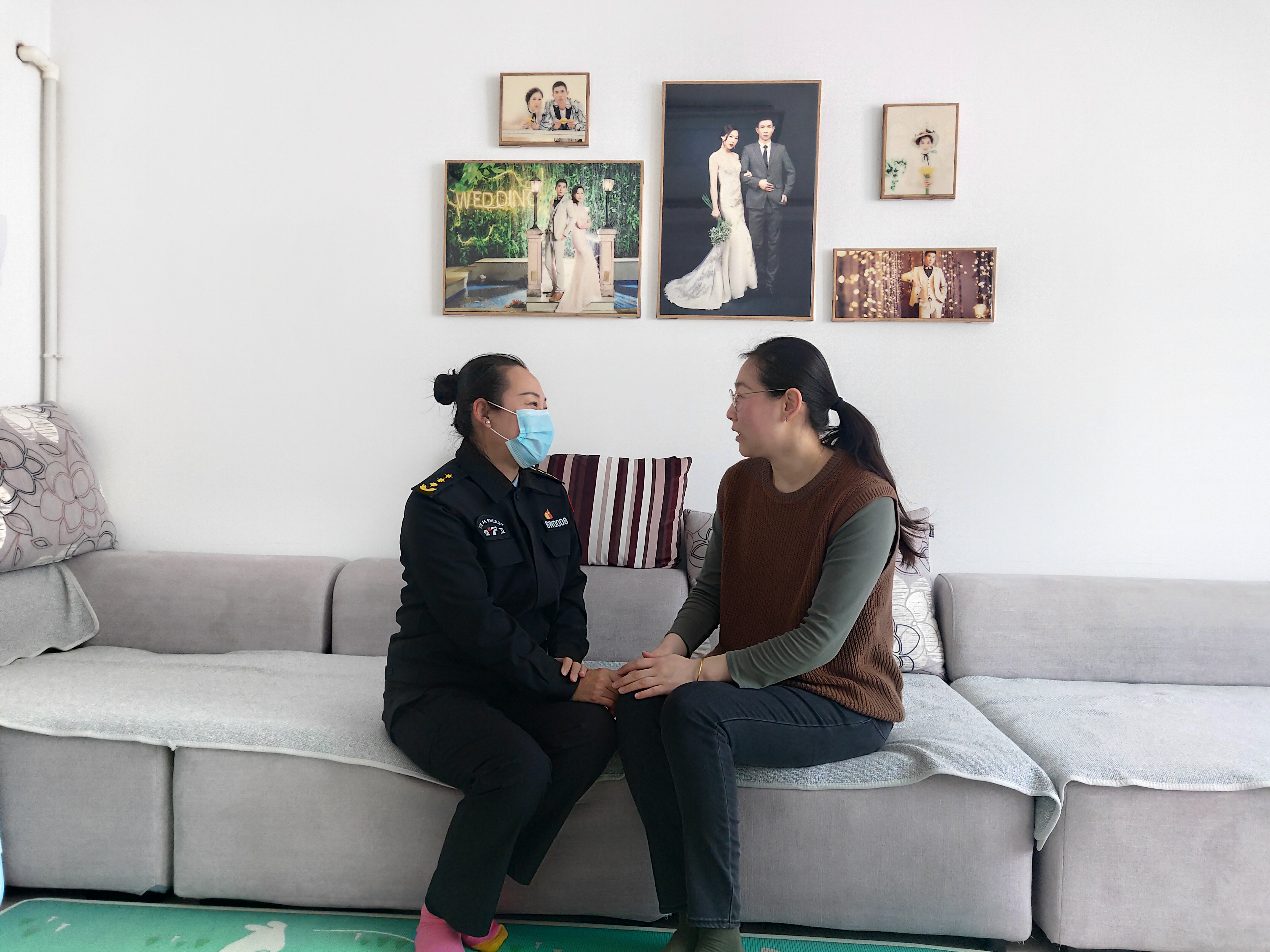 “感謝中心領(lǐng)導的關(guān)心和關(guān)照,如果有需要,我會第一時間和單位聯(lián)系,有中心為我們作后盾,家里一切安好。孩子他爸在公司疫情防控第一線執(zhí)勤,是他的職責,也是我和孩子的驕傲!”武裝保衛(wèi)與信訪服務中心駐大強公司安保大隊員工姜皓的妻子郭麗梅動情地對中心包保結(jié)對領(lǐng)導說。