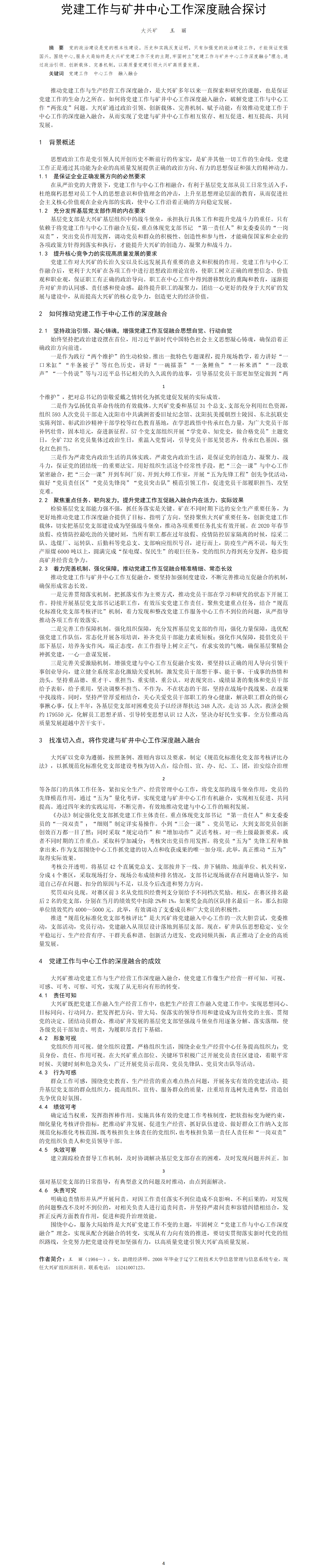 第52屆等級獎論文---黨建工作與礦井中心工作深度融合探討