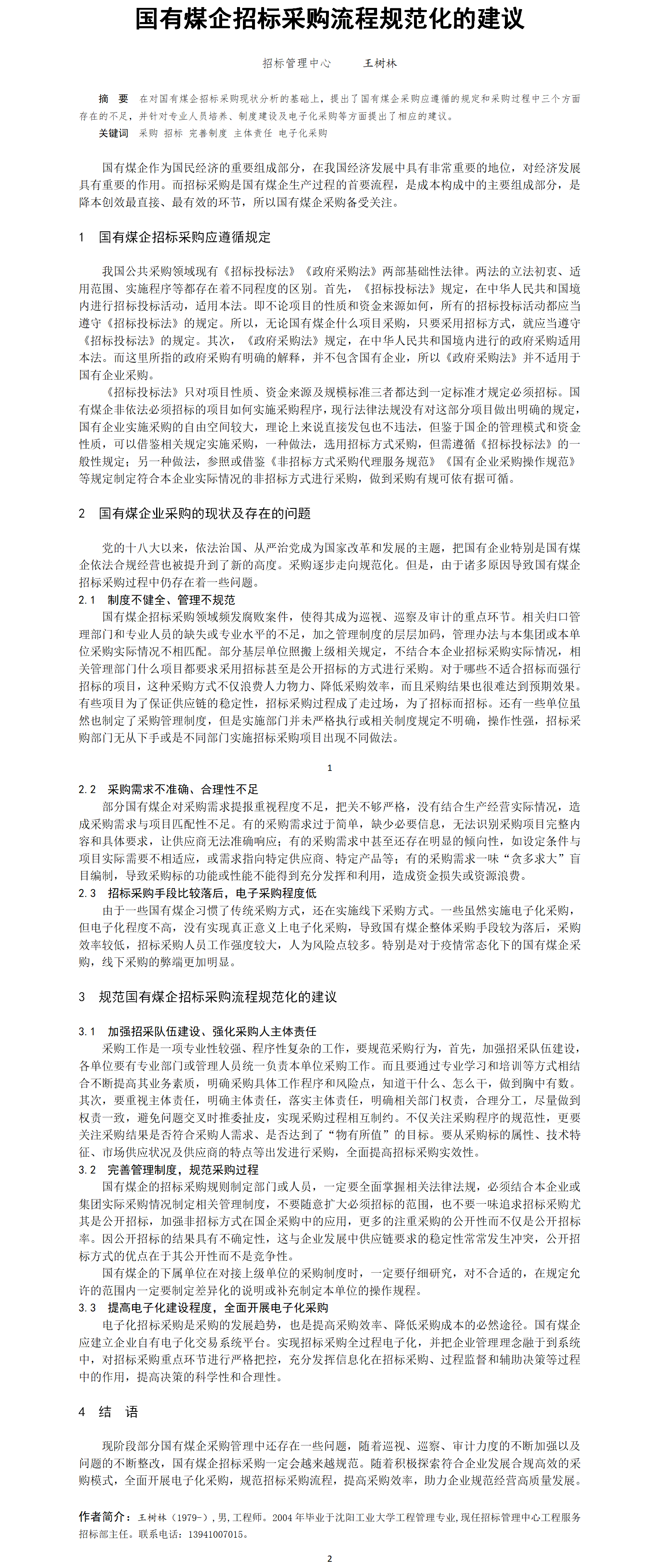 第54屆等級(jí)獎(jiǎng)?wù)撐?--國(guó)有煤企招標(biāo)采購(gòu)流程規(guī)范化的建議