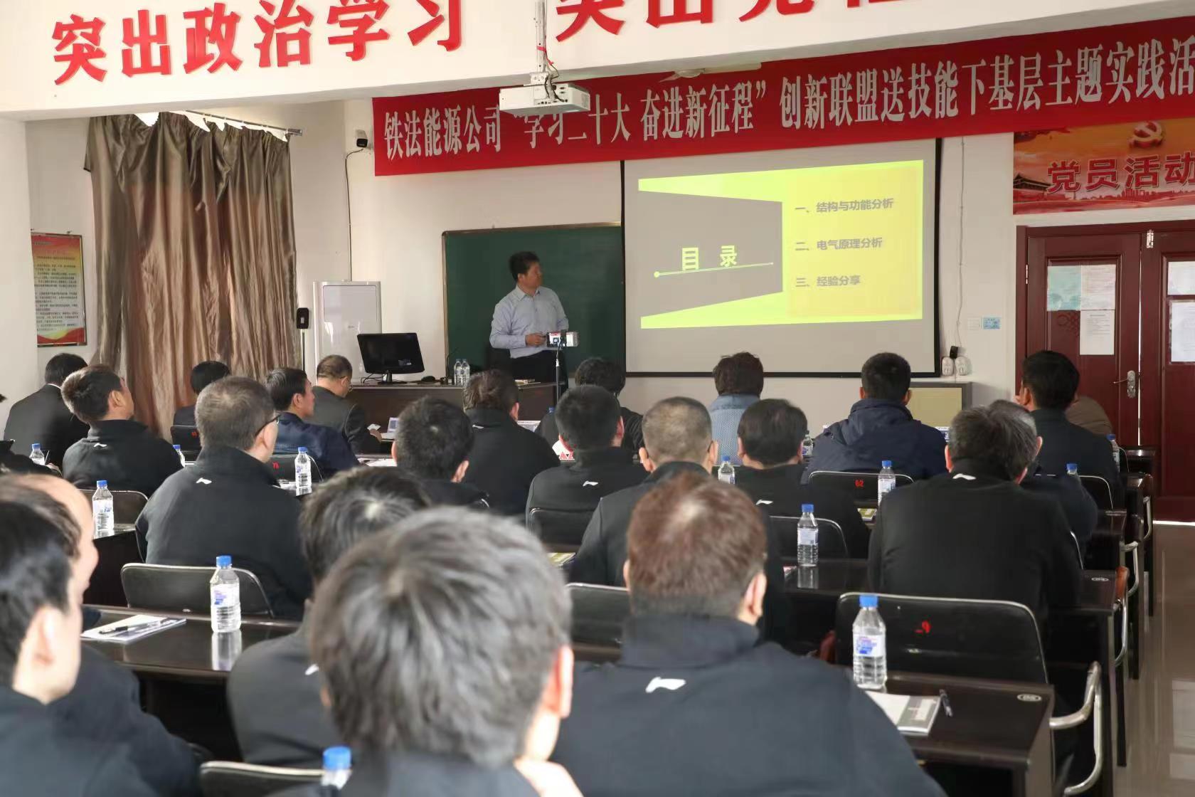 ? 2月17日下午,由公司工會(huì)副主席朱艷、技研中心主任許長(zhǎng)志、工會(huì)生產(chǎn)部長(zhǎng)劉寶虎帶隊(duì),公司創(chuàng)新工作室聯(lián)盟“送技能下基層進(jìn)車間”活動(dòng)走進(jìn)曉南礦,礦領(lǐng)導(dǎo)班子成員、相關(guān)部室負(fù)責(zé)人參加了活動(dòng),全礦40余名礦井維修電工接受了授課培訓(xùn)。?