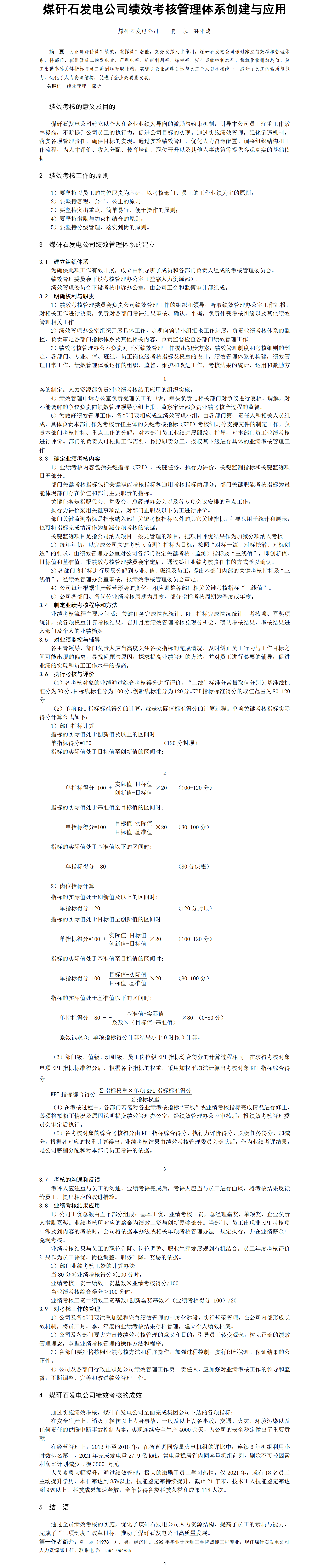 第54屆等級(jí)獎(jiǎng)?wù)撐?--煤矸石發(fā)電公司績(jī)效考核管理體系創(chuàng)建與應(yīng)用