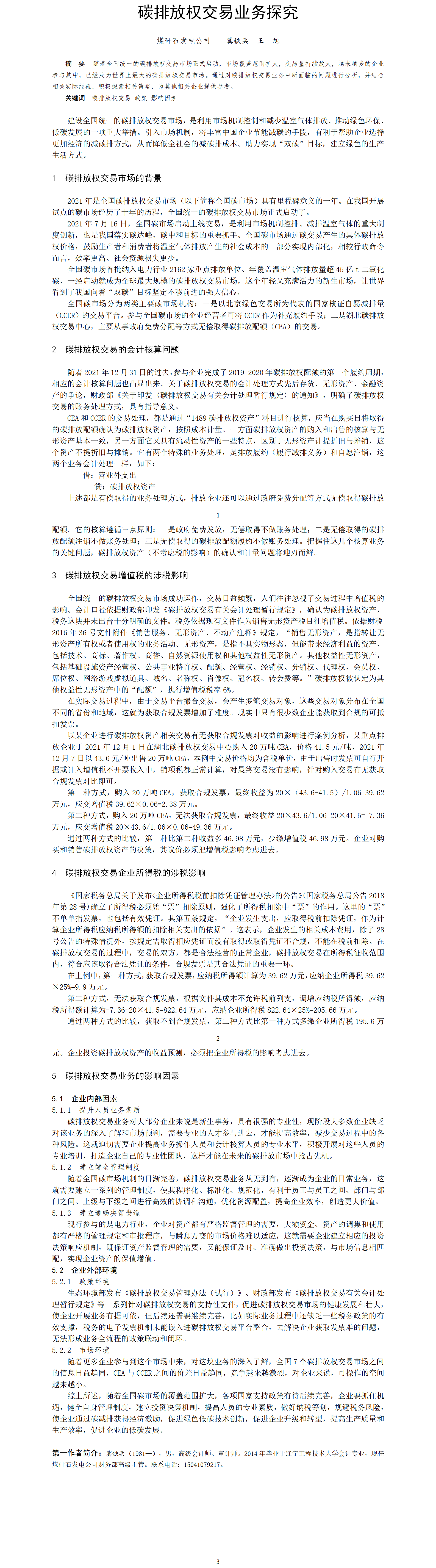 第54屆等級(jí)獎(jiǎng)?wù)撐?--碳排放權(quán)交易業(yè)務(wù)探究