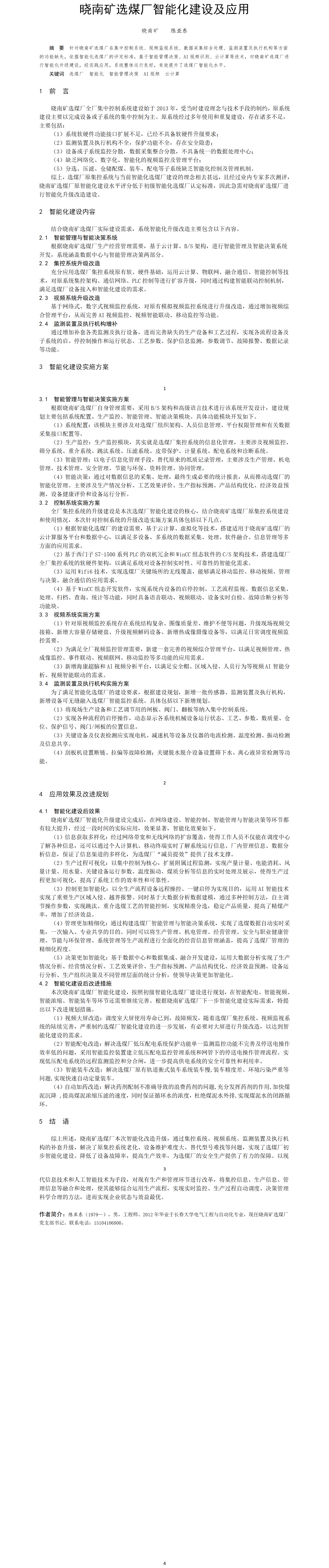 第55屆等級獎論文---曉南礦選煤廠智能化建設及應用