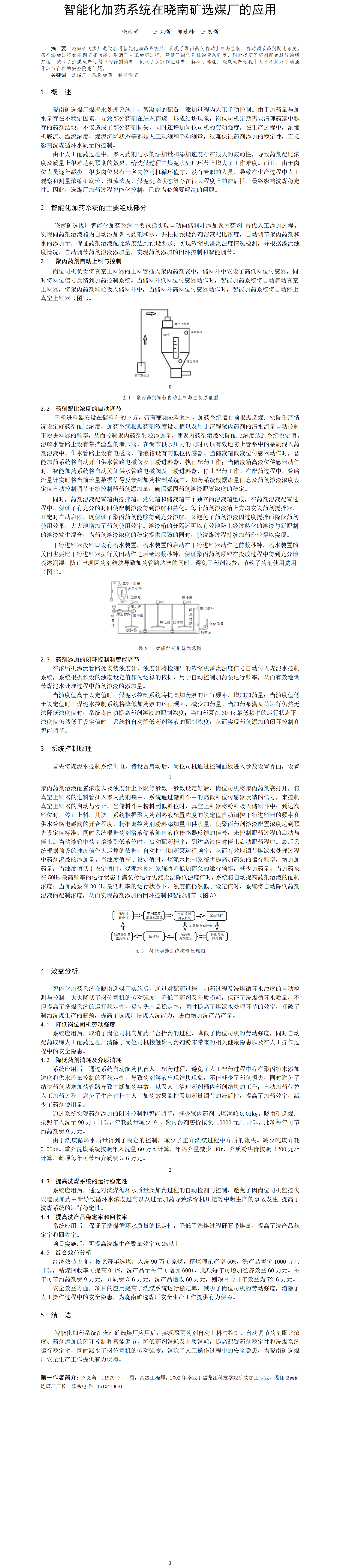 第55屆等級(jí)獎(jiǎng)?wù)撐?--智能化加藥系統(tǒng)在曉南礦選煤廠的應(yīng)用