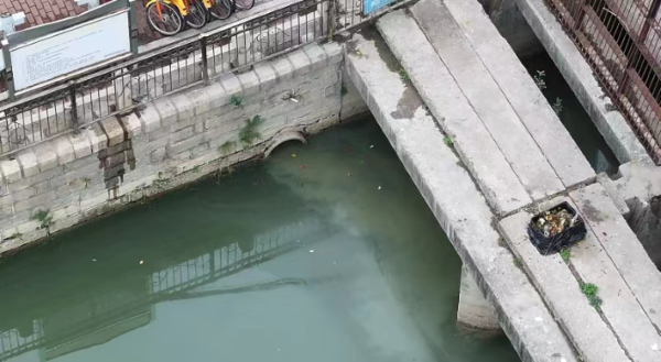 圖3 ?2023年12月7日,督察組現(xiàn)場督察發(fā)現(xiàn),泉州市生活污水直排城市內(nèi)河田淮渠