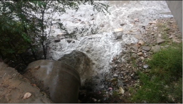 圖3 ?2023年10月11日,督察組暗查發(fā)現(xiàn),西寧市城北區(qū)天津橋西北角排口直接向北川河排放污水