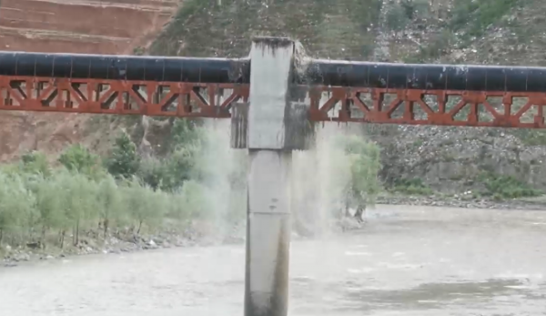 圖4 ?2023年8月22日,督察組暗查發(fā)現(xiàn),海東市民和縣橫跨湟水河的排污管道大量污水噴涌而出