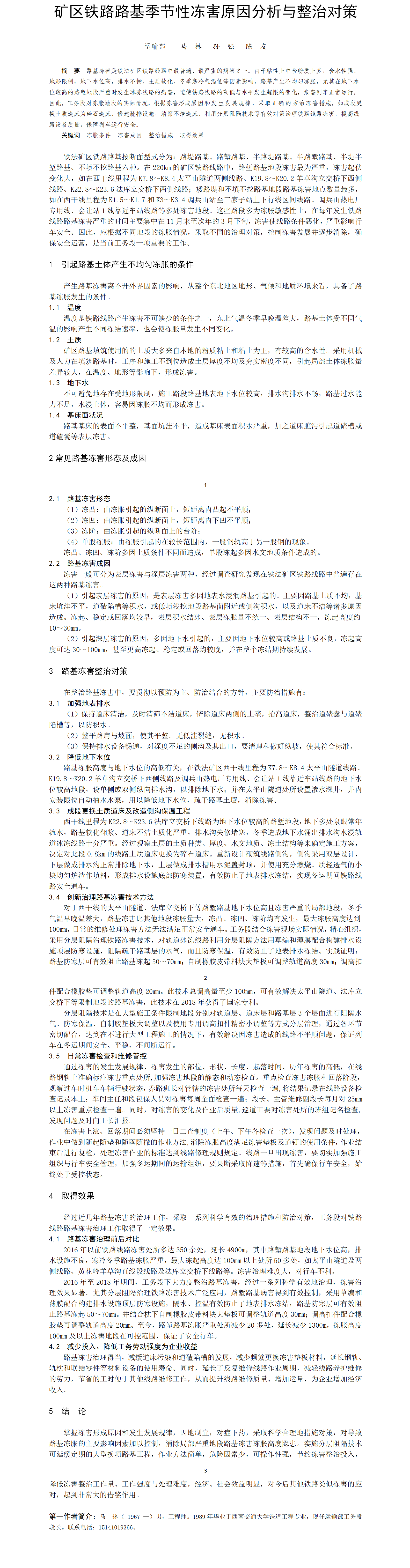 第55屆等級獎?wù)撐?--礦區(qū)鐵路路基季節(jié)性凍害原因分析與整治對策