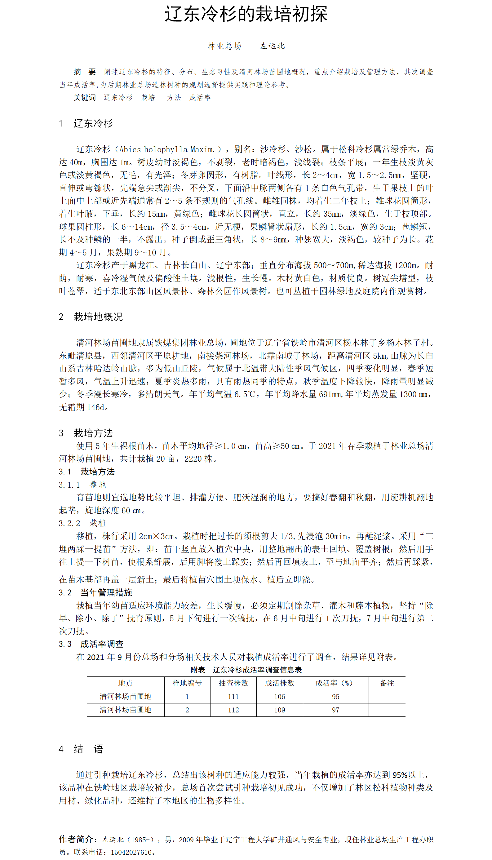 第55屆等級獎?wù)撐?--遼東冷杉的栽培初探