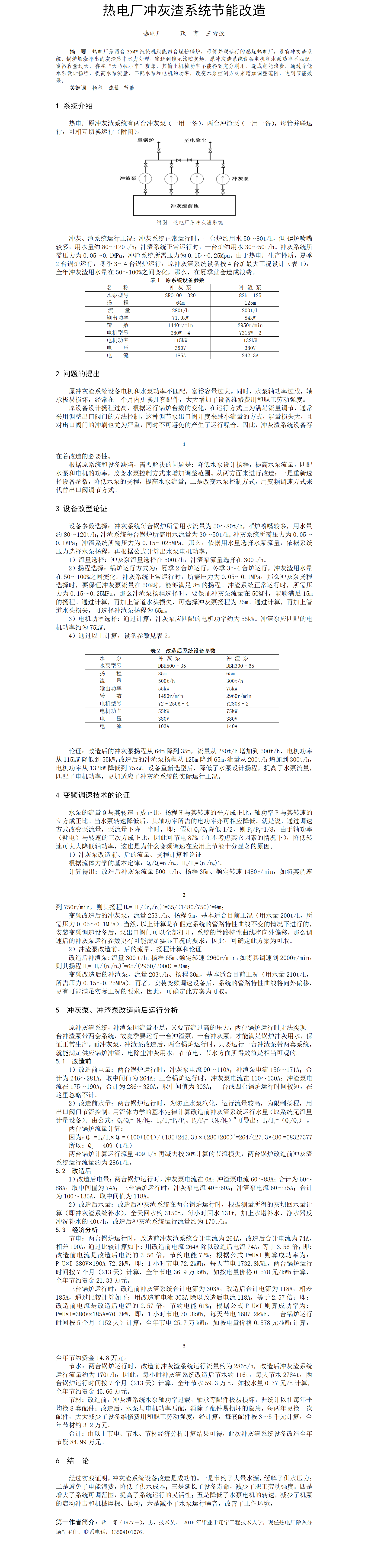 第55屆等級(jí)獎(jiǎng)?wù)撐?--熱電廠沖灰渣系統(tǒng)節(jié)能改造