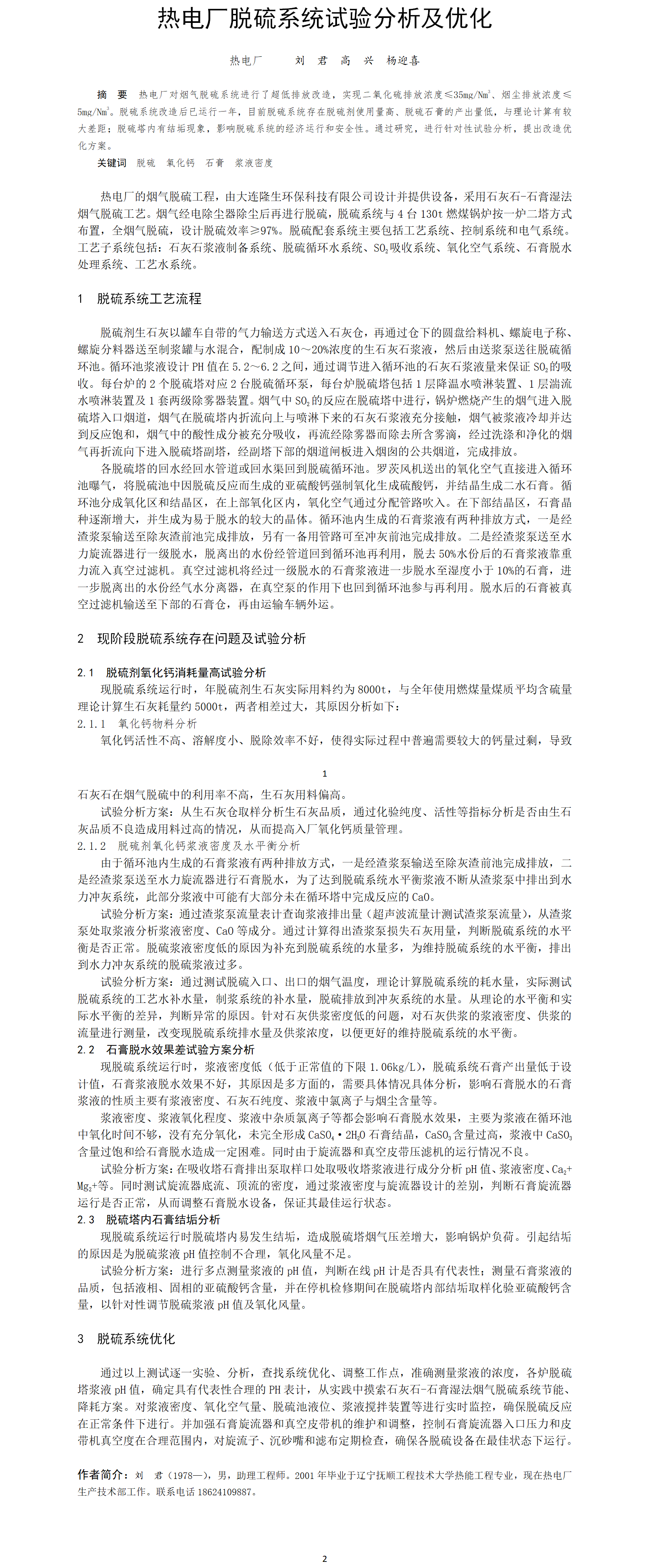 第55屆等級(jí)獎(jiǎng)?wù)撐?--熱電廠脫硫系統(tǒng)試驗(yàn)分析及優(yōu)化