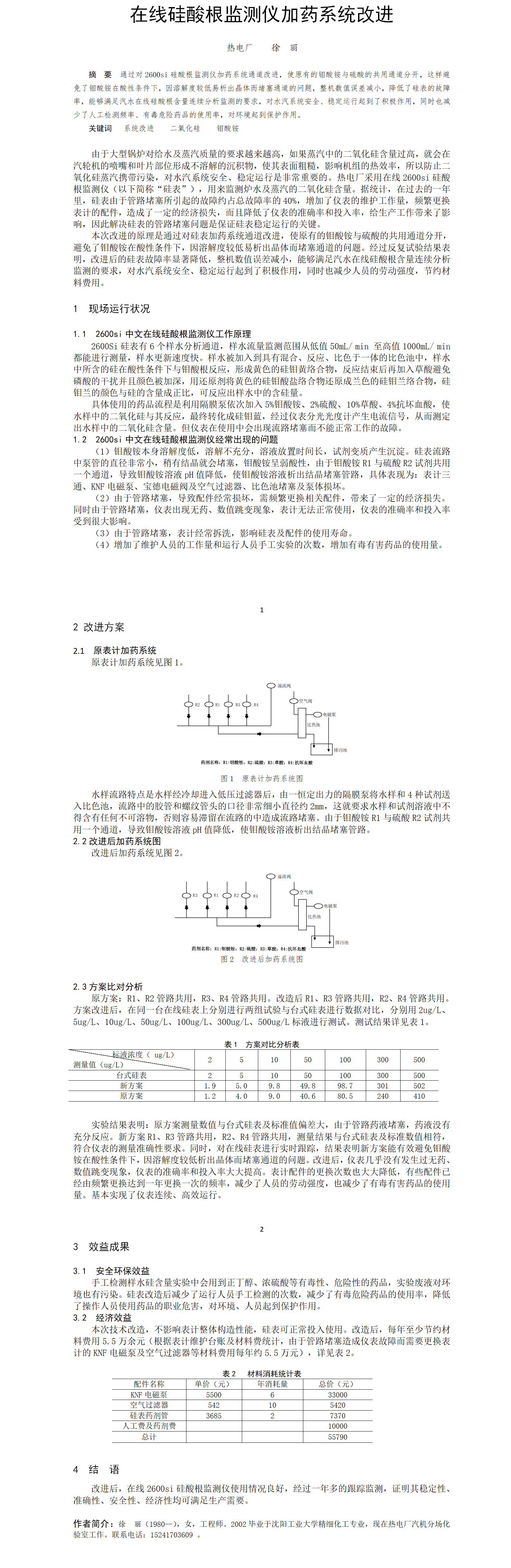 第55屆等級獎?wù)撐?--在線硅酸根監(jiān)測儀加藥系統(tǒng)改進