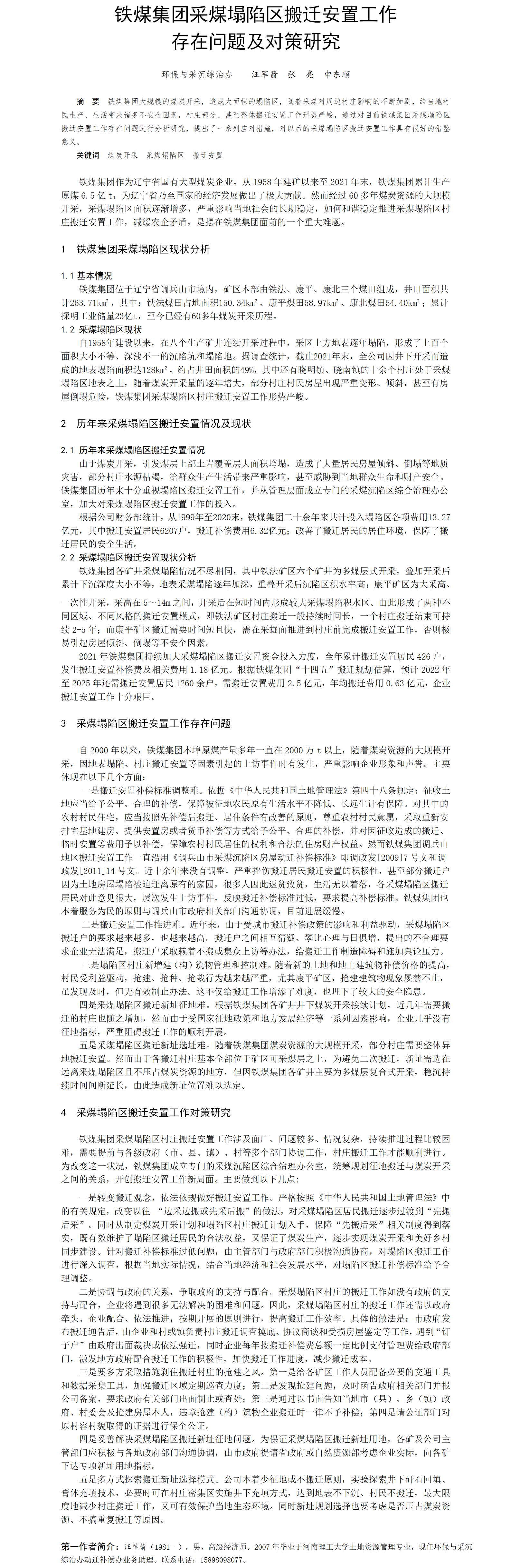 第55屆等級獎?wù)撐?--鐵煤集團(tuán)采煤塌陷區(qū)搬遷安置工作存在問題及對策研究