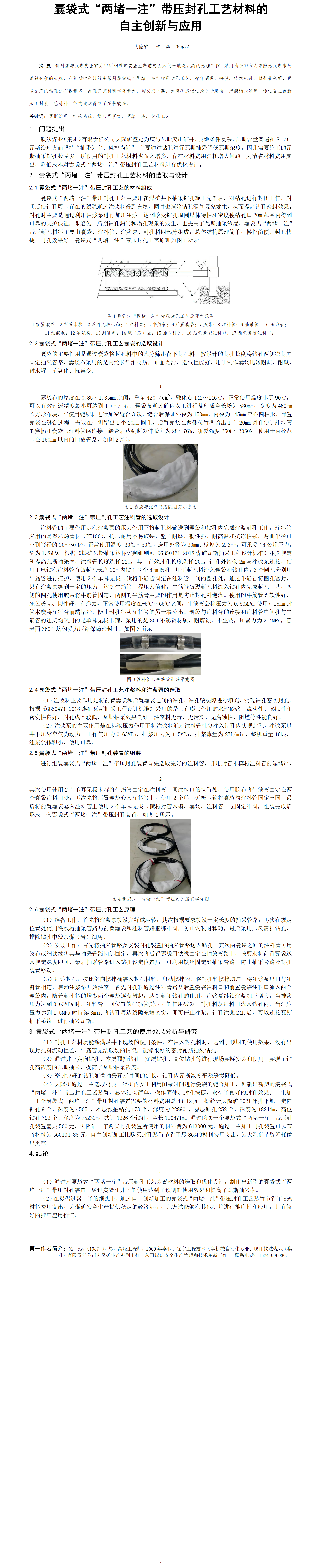 第56屆等級(jí)獎(jiǎng)?wù)撐?--囊袋式“兩堵一注”帶壓封孔工藝材料的自主創(chuàng)新與應(yīng)用