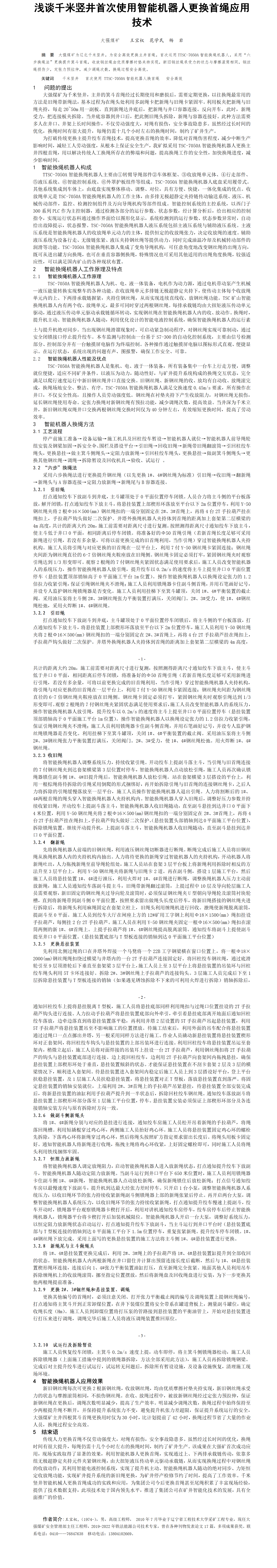 第56屆等級獎?wù)撐?--淺談千米豎井首次使用智能機(jī)器人更換首繩實(shí)踐