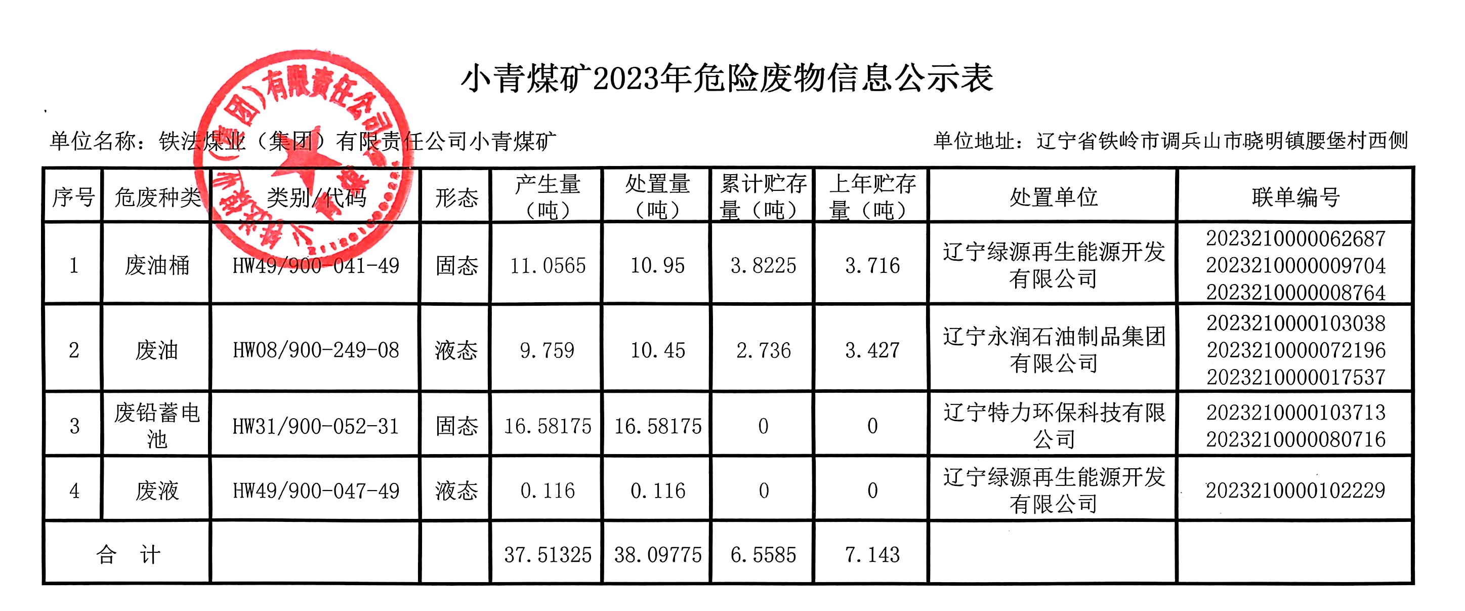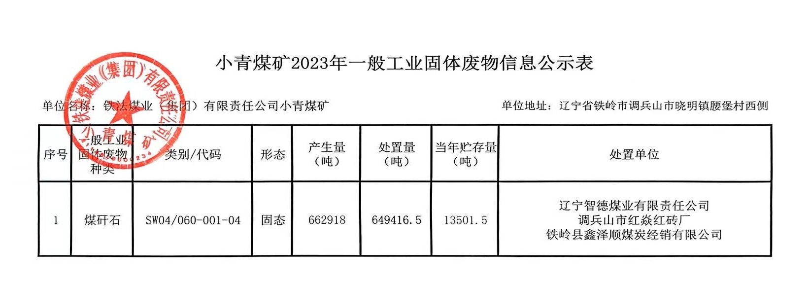 小青礦2023年度固體廢物污染環(huán)境防治信息