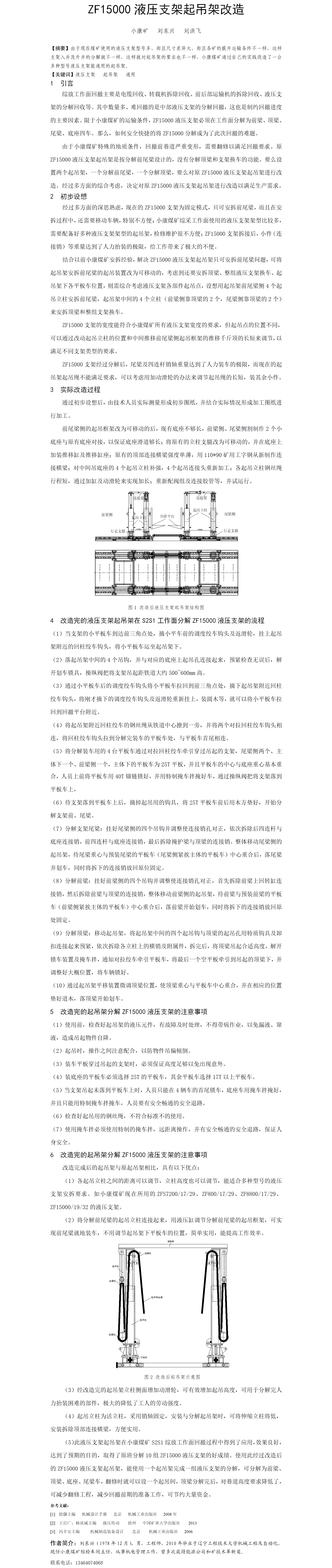 第56屆等級(jí)獎(jiǎng)?wù)撐?--ZF15000液壓支架起吊架改造