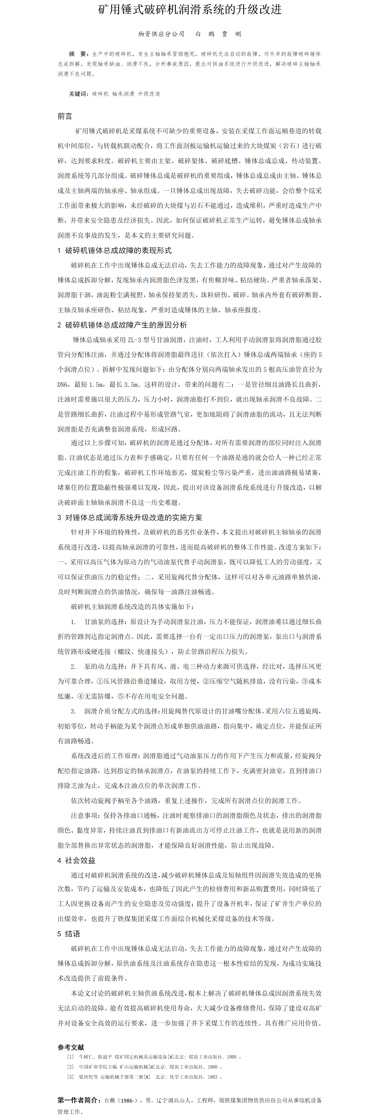 第56屆等級獎?wù)撐?--礦用錘式破碎機(jī)潤滑系統(tǒng)的升級改進(jìn)