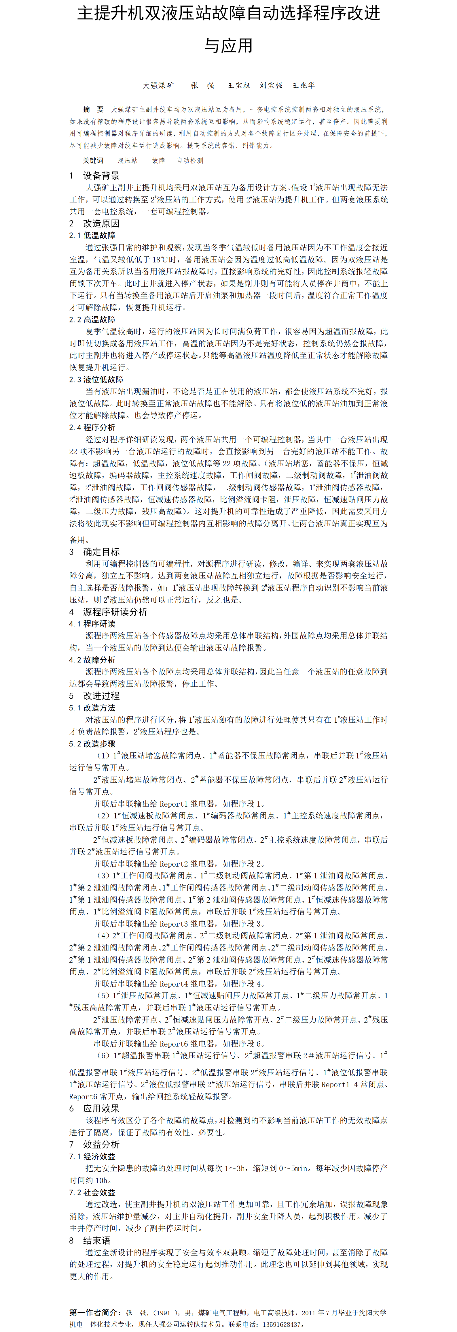 第56屆等級(jí)獎(jiǎng)?wù)撐?--主提升機(jī)雙液壓站故障自動(dòng)選擇程序改進(jìn)與應(yīng)用
