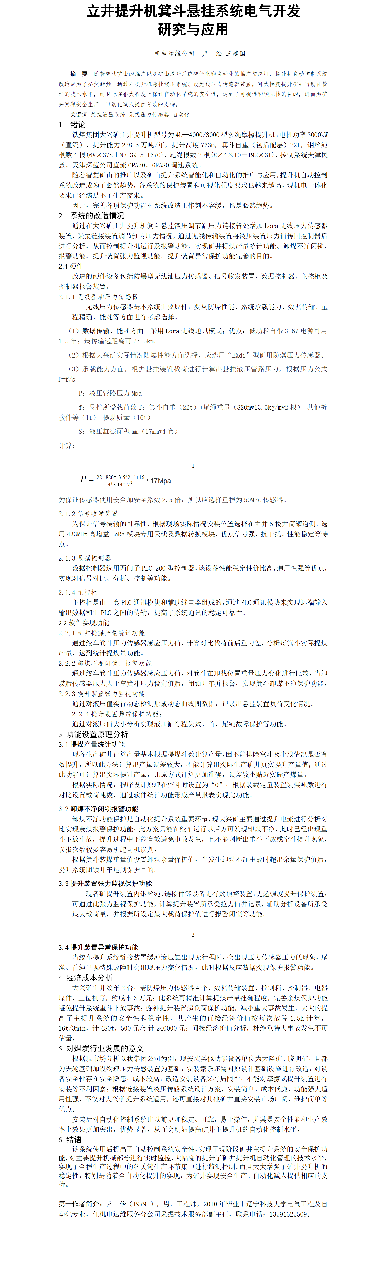 第56屆等級(jí)獎(jiǎng)?wù)撐?--立井提升機(jī)箕斗懸掛系統(tǒng)電氣開(kāi)發(fā)研究與應(yīng)用