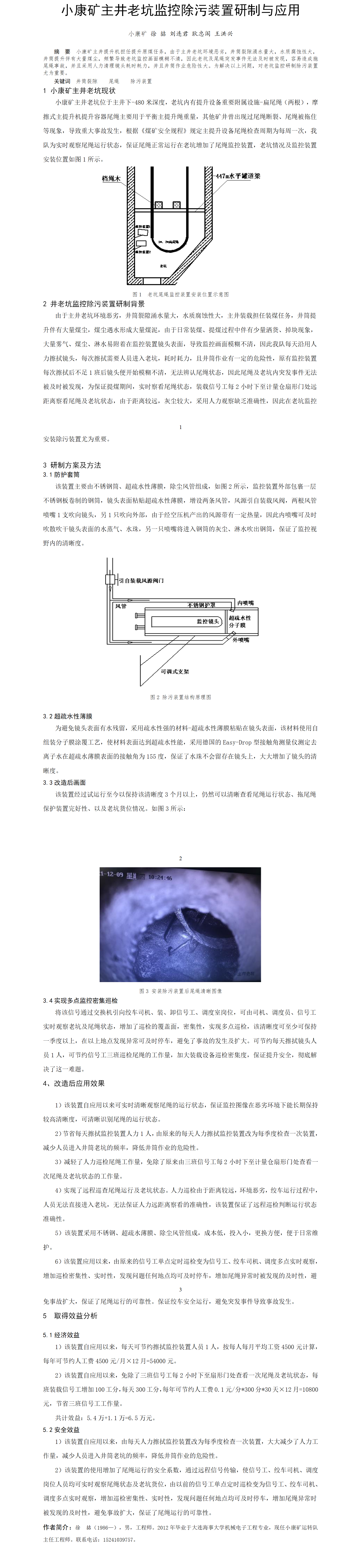第56屆等級(jí)獎(jiǎng)?wù)撐?--小康礦主井老坑監(jiān)控除污裝置研制與應(yīng)用