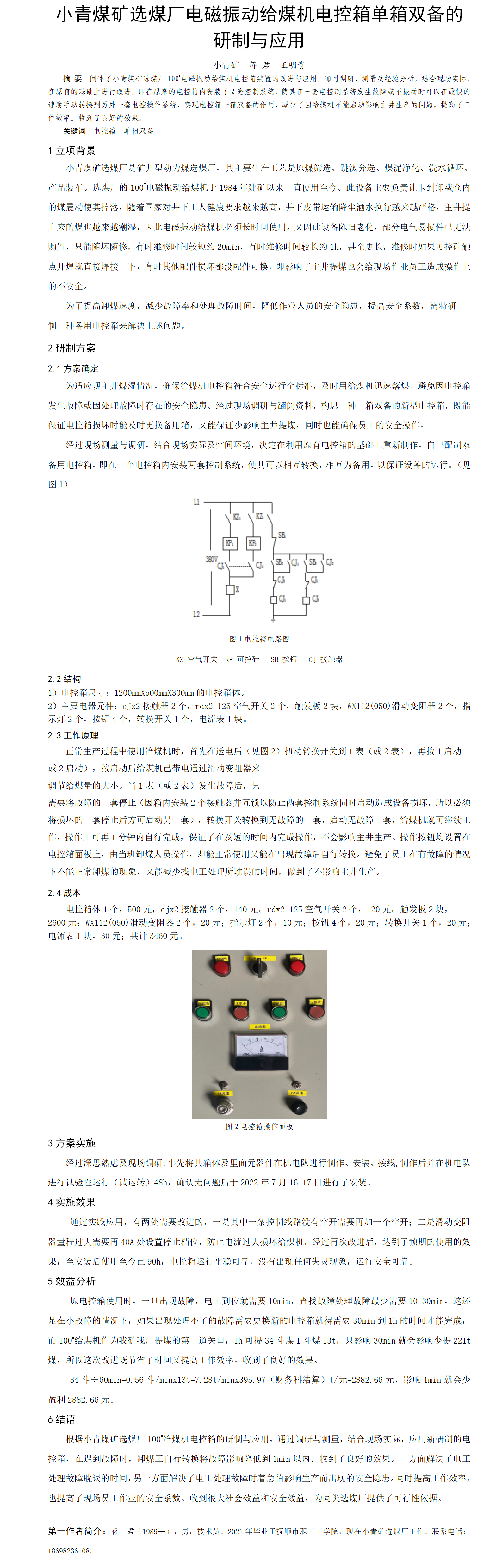 第56屆等級獎論文---小青煤礦選煤廠電磁振動給煤機電控箱單箱雙備的研制與應用