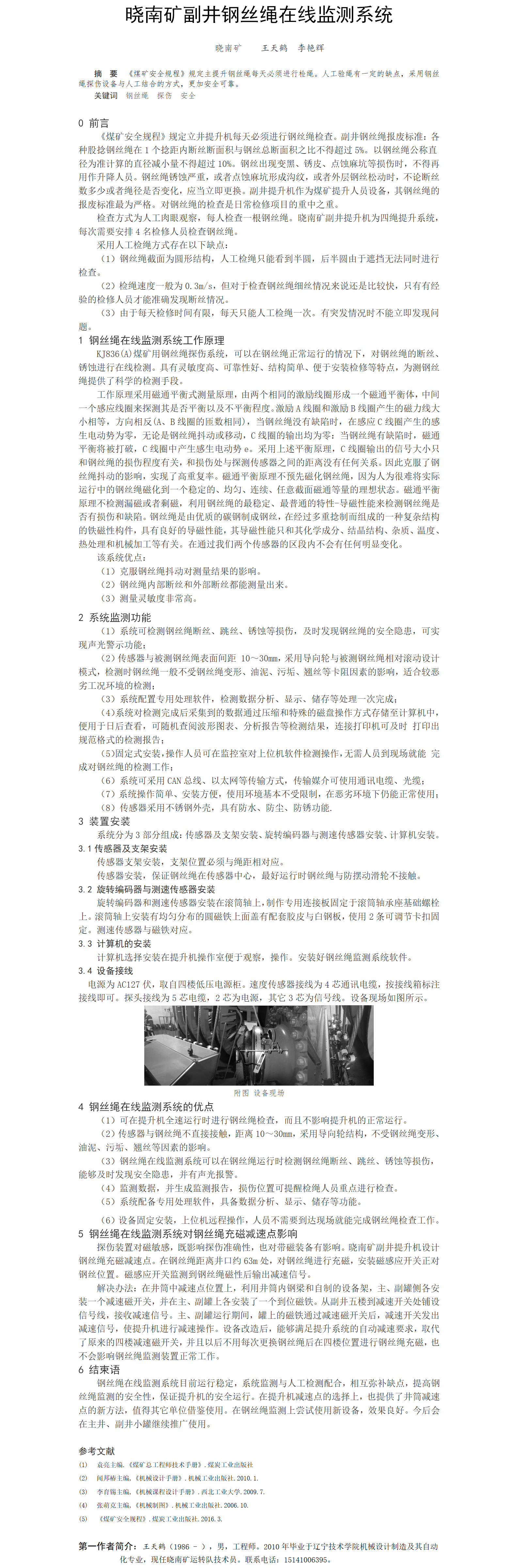 第56屆等級獎(jiǎng)?wù)撐?--曉南礦副井鋼絲繩在線監(jiān)測系統(tǒng)