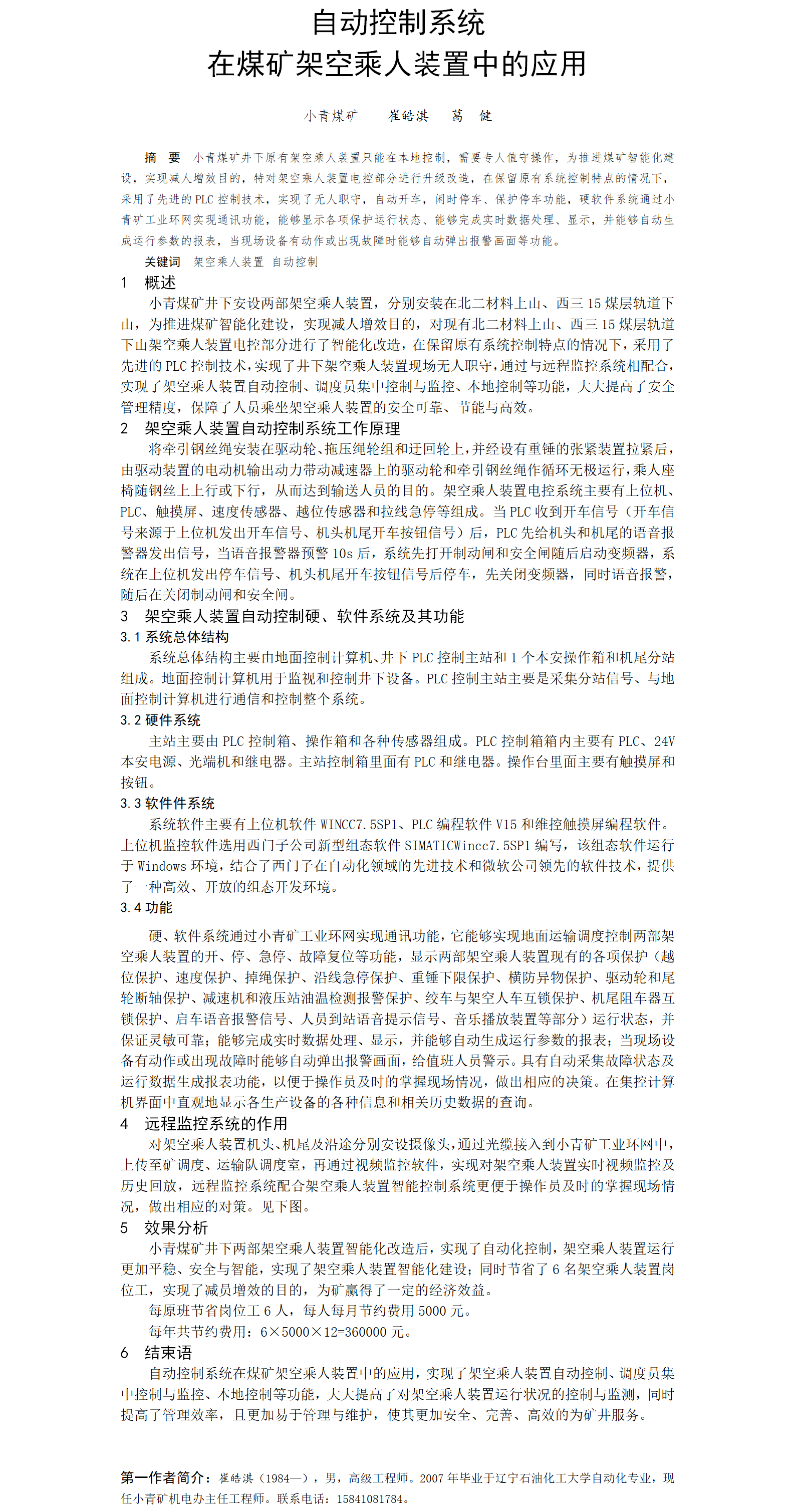 第56屆等級(jí)獎(jiǎng)?wù)撐?--自動(dòng)控制系統(tǒng)在煤礦架空乘人裝置中的應(yīng)用