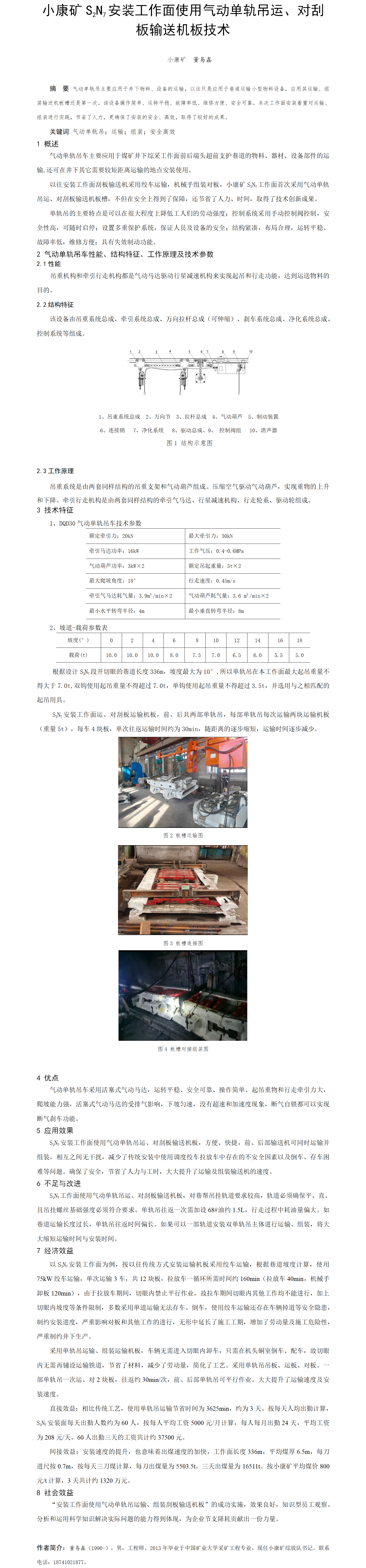第57屆等級(jí)獎(jiǎng)?wù)撐?--小康礦S2N7安裝工作面使用氣動(dòng)單軌吊運(yùn)、對(duì)刮板輸送機(jī)板技術(shù)