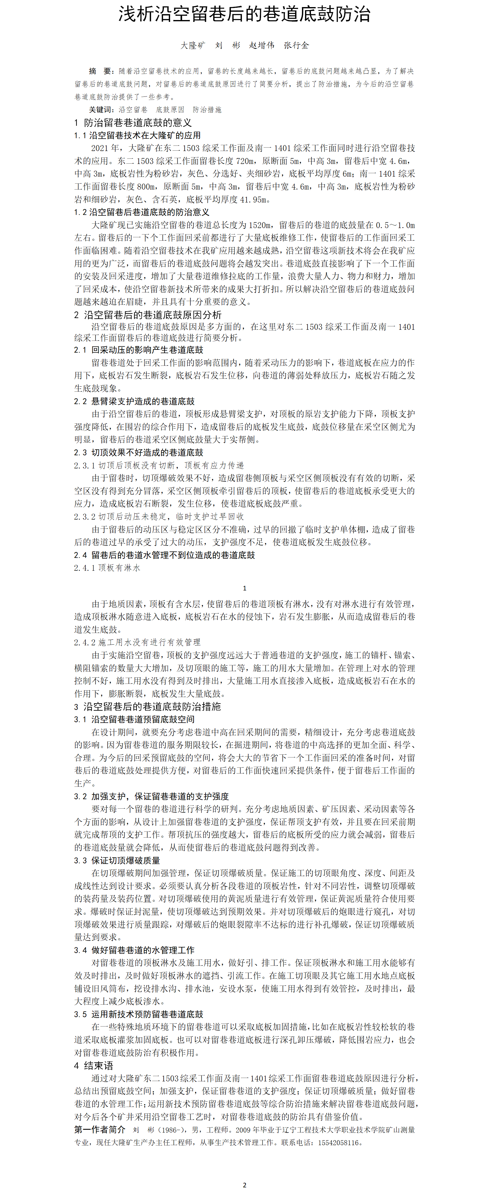 第57屆等級獎?wù)撐?--淺析沿空留巷后的巷道底鼓防治