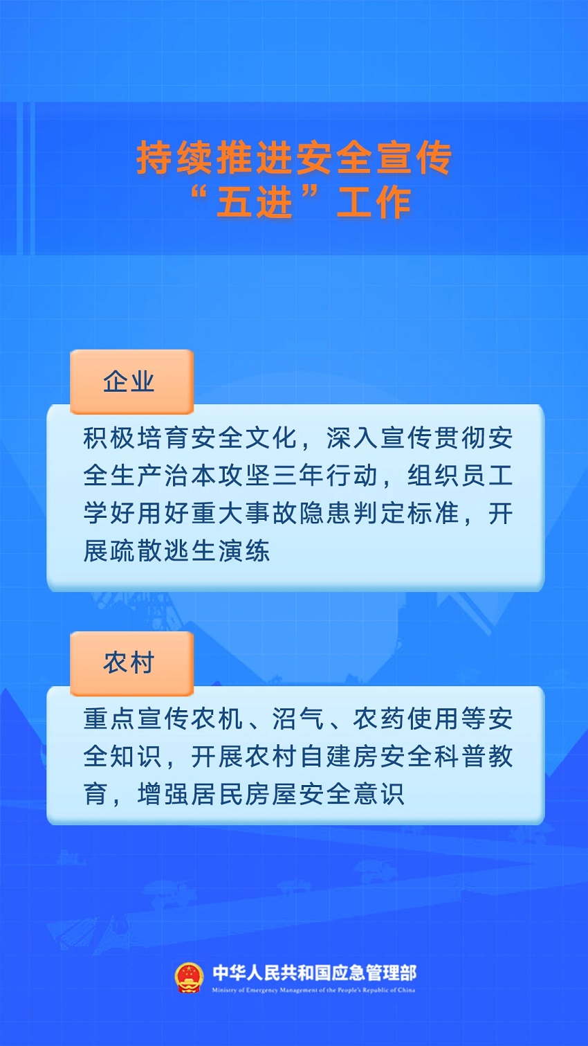今年6月是第23個全國“安全生產月” 6月16日為全國“安全宣傳咨詢日” 近期 國務院安委會辦公室、應急管理部印發(fā)通知 明確今年全國“安全生產月”活動主題為 “人人講安全、個個會應急——暢通生命通道” 對開展好2024年全國“安全生產月”活動 作出安排部署 有哪些活動安排? 一起了解!