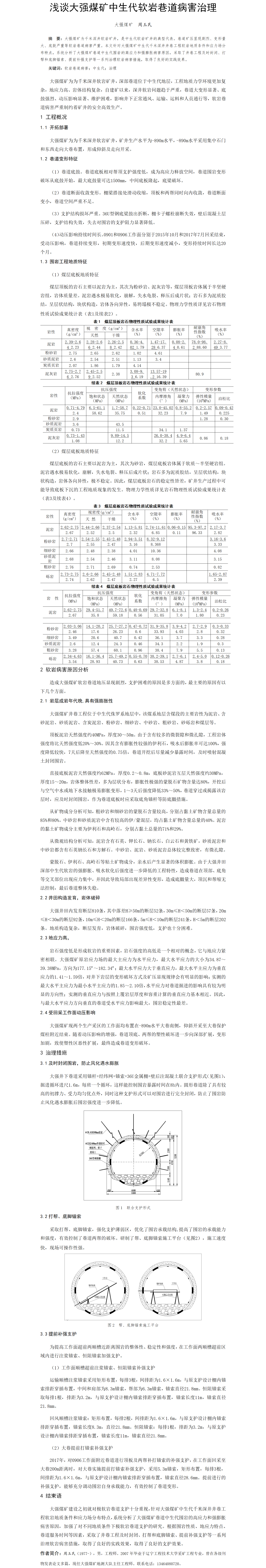 第57屆等級獎?wù)撐?--淺談大強(qiáng)煤礦中生代軟巖巷道病害治理