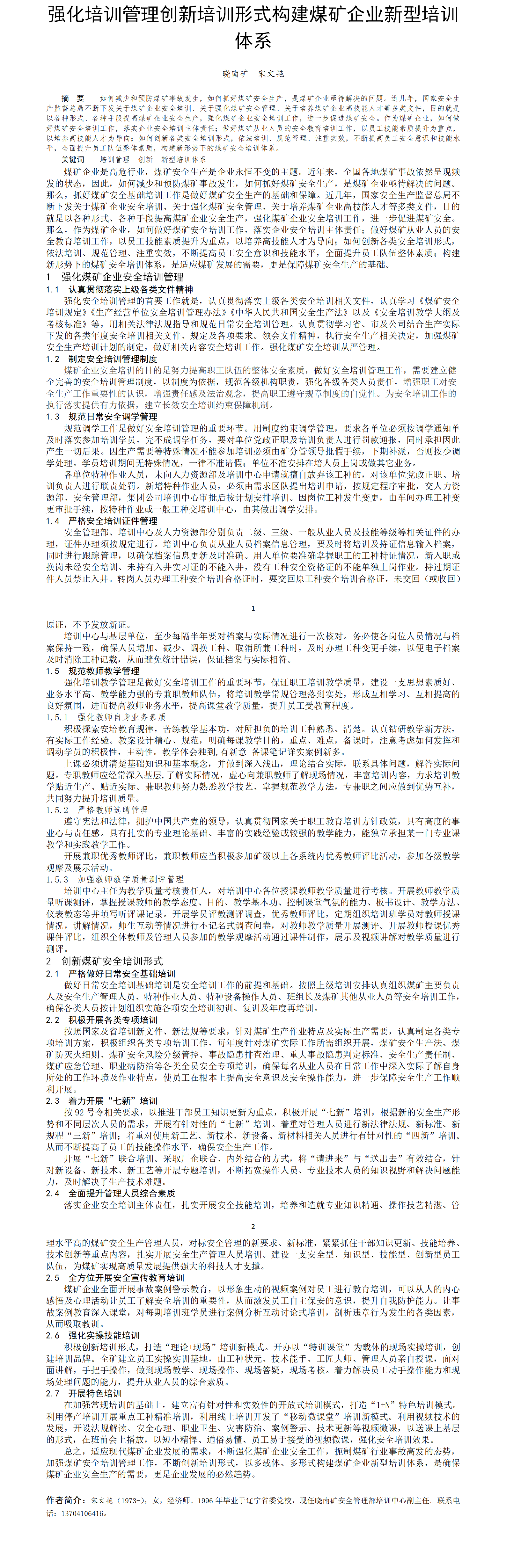 第58屆等級獎?wù)撐?--強(qiáng)化培訓(xùn)管理創(chuàng)新培訓(xùn)形式構(gòu)建煤礦企業(yè)新型培訓(xùn)體系